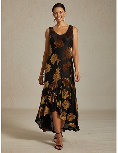 Vestido Tipo Tubo Coluna Comprimento Longo Comprimento Chá Vestido de Festa Vestido de Cocktail Vestido de Convidada de Casamento Vestido da Mãe da Noiva Manga Longa Gola Quadrada Elegante Vintage