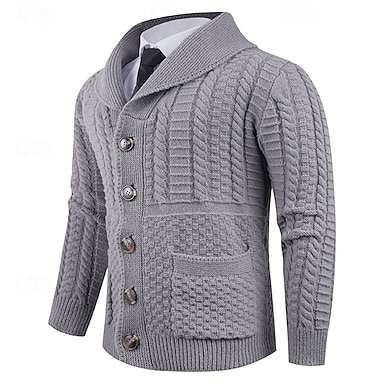 Homens Sueter Cardigan Suéter Cortado Suéter de malha Estriado Tricotar Tops regulares Bolsos Botões Tecido Lapela Xale Moda Clássico Férias Roupa Diária Roupa Outono Inverno Preto Cinzento Claro S M