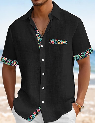 Homens Tropical Camisa Social Camisa havaiana Camiseta Aloha Manga Curta Camisa Aberto para a Lateral Tropical Moda Havaiana Ao ar livre Praia Rua Preto + Preto Amarelo Rosa S M L
