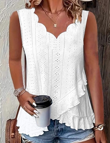 Mulheres Topo de ilhó Camiseta Pointelle Textura Gráfico Plantas à moda Sensual Clássico Sem Manga Gola Redonda Tops regulares Casual Diário Praia Branco Amarelo Rosa Rosa empoeirada Verde Verão