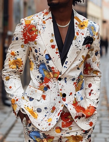 Homens Estampa floral Jaqueta Blazer Casaco Da Moda Confortável Respirável Artistíco Casual Diário Formal Traje de festa para noite Impressão 3D Botões Bolso multi Primavera Outono & inverno Entalhe