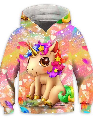 Para Meninas 3D Animal Unicórnio Moletom Manga Longa Impressão 3D Primavera Inverno Ativo Esportes Moda Poliéster Infantil 3-12 anos Ao ar livre Diário Interior Normal