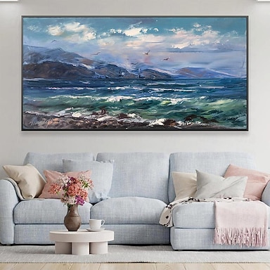 pintura de paisagem marítima pintada à mão handmde pintura a óleo da costa da califórnia pintura de mar azul arte de parede com moldura dourada pintura de mar arte de cena grande pintura costeira