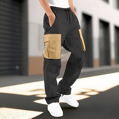 Homens Calças Cargo Corredores Calças Calças Táticas Calças de trabalho Com Cordão Bolso multi Bolso com aba Côr Sólida A Prova de Vento Conforto Diário Ao ar livre Feriado Roupa de rua à moda Preto