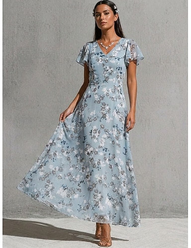 Mulheres Vestido midi Vestido de chiffon Vestido Coquetel Vestido floral Vestido estampado Moda Moderno Ao ar livre Férias Festa de Chá Normal Flor Manga Curta Decote V Roxo Verde Azul Claro Verão