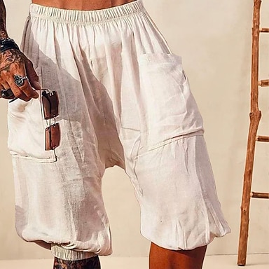 Homens Calção Shorts de linho Shorts de verão Calçolas Bolsos Cintura elástica Folgado Tecido Conforto Respirável Curto Casual Diário Feriado Moda Estilo Clássico Preto Branco