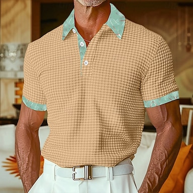 Homens Textura Camisa de golfe O negócio Casual Clássico Manga Curta Moda Moderno Côr Sólida Havaí Botões Verão Primavera Normal Preto Branco Verde cáqui Textura