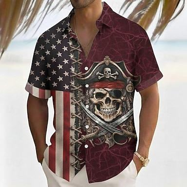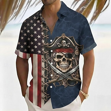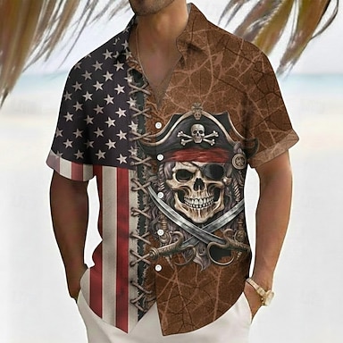 Camisa Patriótica da Bandeira Americana dos EUA Estrelas do Dia da Independência Masculina Camisa de Verão Botão para Cima Camisa de Manga Curta Casual de Moda Férias de Verão Primavera Gola 3D