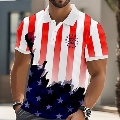 Dia da Independência Homens 4 de julho - 250º aniversário dos EUA Estátua da Liberdade Bandeira dos EUA Camisa Social camisa de verão camisa de botão Manga Curta Moda Casual Feriado Verão Primavera