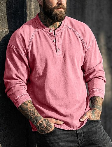 Homens Camiseta Camisa Henley Camisa 100% algodão com lavagem ácida T-shirt Manga Longa Tecido Vintage Roupa de rua Casual Tingimento em peça Desaparecido Lavado Colarinho Chinês Henley Casual Casa