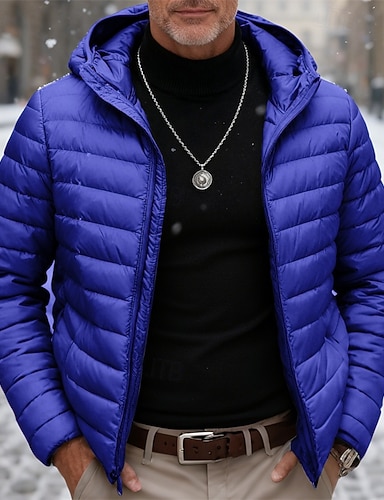 Homens Casaco de inverno Baixa Casaco puffer Jaqueta acolchoada Bolsos 50% de pato branco Férias Roupa Diária Encontro Padrão Moda Casual Confortável Térmico / Quente Inverno Cor Sólida / Simples