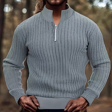 Homens Pulôver suéter Suéteres com zíper Suéter de malha Estriado Tricotar Tops regulares Tricotado Tecido Meio Zíper Moda Casual Férias Roupa Diária Roupa Outono Inverno Vinho Preto S M L