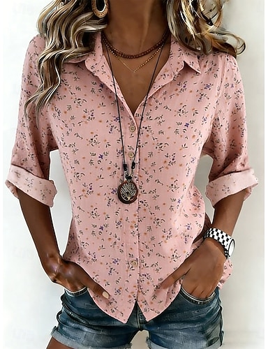 Mulheres Camisa Social Blusa Patchwork Botões Imprimir Floral Gráfico Vintage Casual Manga Longa Colarinho de Camisa Tops regulares Casual Diário Branco Rosa Verão Primavera Outono Inverno