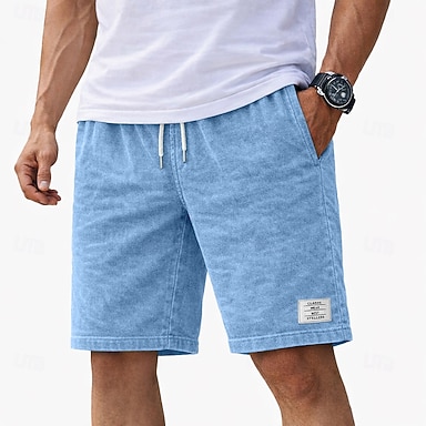 Homens Calção Shorts casuais Shorts com lavagem ácida Com Cordão Cintura elástica Bolso multi Tecido Cor Única Conforto Respirável Acima do Joelho Diário Streetwear Férias Moda Casual Preto Azul