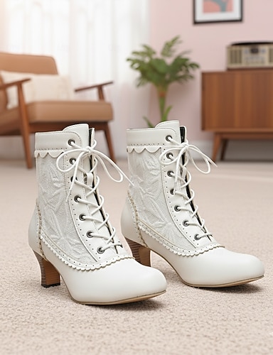 Botas femininas estilo vitoriano eduardiano, brancas e pretas, com cadarço, detalhes brogue e salto gatinho - botas sociais vintage para mulheres, perfeitas para cosplay, steampunk &reconstituições