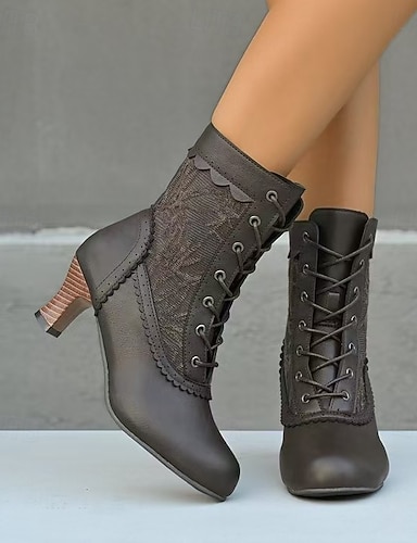Botas femininas vintage com cadarço e salto médio – botas jacquard elegantes para estilo retrô e ocasiões especiais