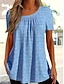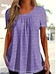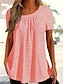 Mulheres Camisa Social Camiseta Frufru Patchwork Ilhó Côr Sólida Elegante Moda Clássico Manga Curta Decote V Tops regulares Diário Para Noite Final de semana Preto Branco Rosa Verde Verão Primavera
