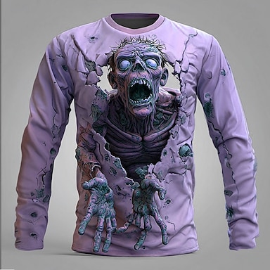 Homens 3D impressão Zumbis 3D Camiseta Manga Curta Camiseta Impressão 3D Gola Redonda Camisa Exagerado Designer Terror Festa Rua Feriado Azul Verde 1# Verde 2# Verão Primavera Todas as Estações Roupa