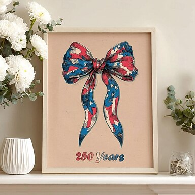 Impressão da Laço da Bandeira Americana – Arte de Parede do 250 Anos da América Pôster do Semiquincentenário dos Estados Unidos 250º Aniversário dos EUA