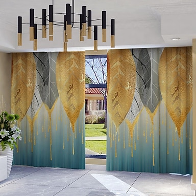 Cortinas com estampa geométrica de folhas (2 peças), painéis de poliéster com bolso para varão, cortinas modernas com estampa botânica, laváveis à máquina, adequadas para sala de estar, quarto,