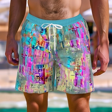 Homens Geométrica Cor gradiente Shorts Forrados Shorts de Natação 2 em 1 Shorts de Natação Cintura Média Havaiana Feriado Bolsos laterais Com forro de compressão Cintura elástica com cordão Designer