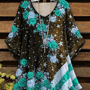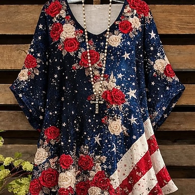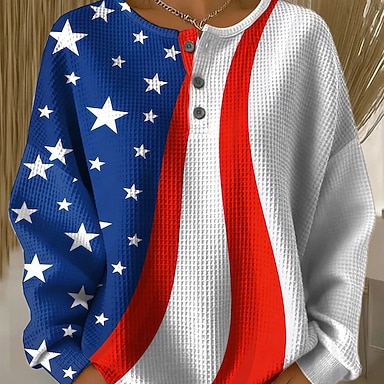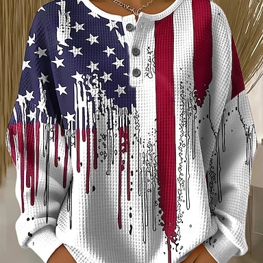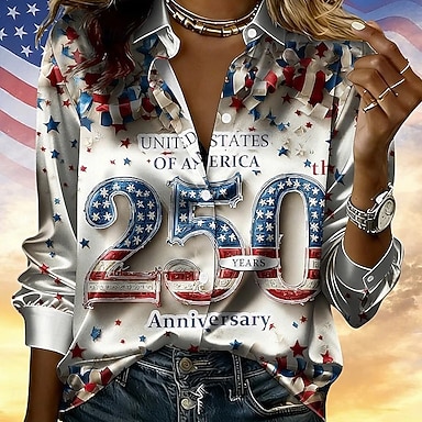Dia da Independência Americana Mulheres Camisa Social Botões Imprimir Gráfico Abstrato 250º aniversário dos Estados Unidos Vintage à moda Moderno Manga Longa Colarinho de Camisa Tops longos Diário