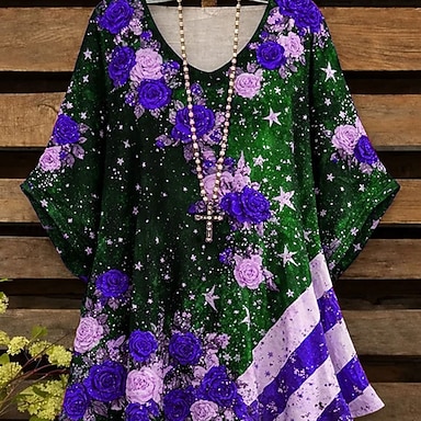 Mulheres Camiseta T-shirt Botões Imprimir Floral Moda à moda Clássico Manga Curta Gola Redonda Tops regulares Diário Para Noite Final de semana Azul Rosa Azul Marinha Roxo Verão Primavera