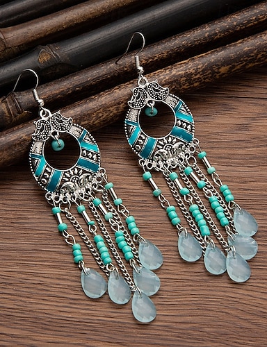 Brincos femininos boêmios de liga metálica turquesa, joias pendentes leves, perfeitas para férias na praia, uso casual no dia a dia e acessórios de verão.