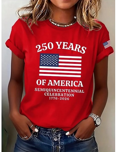Dia da Independência Americana Mulheres Camiseta Imprimir Gráfico Letra Bandeira americana Vintage à moda Clássico Manga Curta Gola Redonda Tops regulares Diário Branco Vermelho Azul Marinha Vermelho