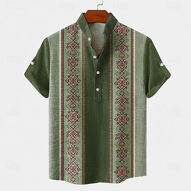 Homens Diretores de bordo Estampa Geométrica Tribal Camisa Social camisa de botão Manga Curta Vintage retrô Feriado Casual / Diário Verão Primavera Colarinho Clerical Colar Henley Impressão 3D Camisa