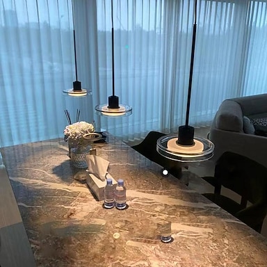 luzes pendentes led cozinha ilha vidro soprado iluminação mármore azul moderno casa de fazenda hall de entrada luminárias teto globo pendurado sobre a mesa