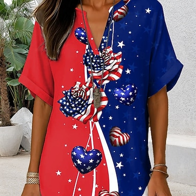 Dia da Independência Blusa Patriótica Feminina Semelhante a Linho Respirável Leve Gráfica Boêmia Vintage Diária Sem Mangas Manga Curta Gola em V Feriado Semi Branco Vermelho Azul Verde Bege