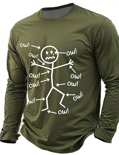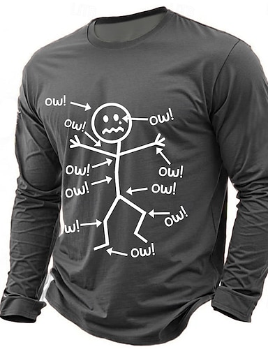 Camiseta Gráfica Engraçada para Homens Ow Dores e Desconfortos de Manga Curta