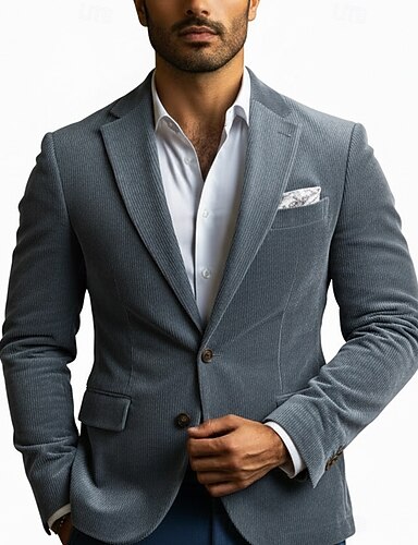 Blazer masculino de veludo com gola entalhada, estilo clássico casual para escritório, cor sólida, disponível nas cores preto, azul marinho e marrom, corte ajustado, abotoamento simples com dois