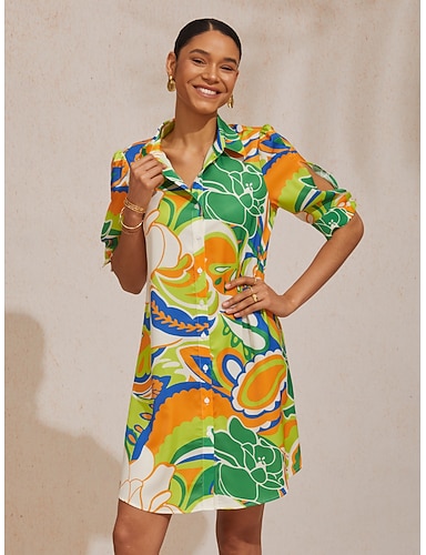 Vestido curto de cetim amarelo com estampa floral para férias