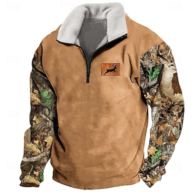 Homens floresta Veado Moletom Moletom com zíper Manga Longa Moletom Colarinho Chinês Quarter Zip Casual Vintage retrô Impressão 3D Férias Para Noite Streetwear Half Zip Outono Inverno