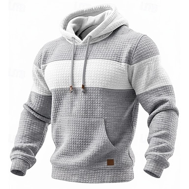 Homens Moletom Moletons Waffle Estacionar Preto Verde Tropa Azul Marinha Cáqui Cinza Claro Com Capuz Tecido Patchwork Bloco de cor bolso canguru Casual Diário Desportos e Ar livre Poliéster Roupa de