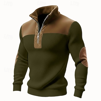 Homens Estacionar Moletom com zíper Malha canelada Marron Colarinho Clerical Meio Zíper Tecido Patchwork Estriado Textura Desportos e Ar livre Casual Diário Roupa de rua Legal Roupa de Esporte