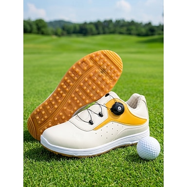 Sapatos de golfe masculinos com sistema de ajuste Boa – couro sintético premium, design elegante na cor branca para golfe e esportes ao ar livre.