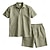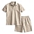 Homens Camisa de linho 2 Peças Camisa Popover E Calção Shorts de linho Shorts de praia Definir Tecido Diário Ao ar livre Férias Aberto para a Lateral Manga Curta Verão Moda Casual Confortável Roupa