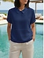 Mulheres Blusa Textura Topo de ilhó Camiseta Pointelle Top de ombro a descoberto Buraco Côr Sólida Moda à moda Clássico Manga Curta Gola Redonda Decote V Tops regulares Casual Diário Praia Preto