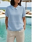 Mulheres Camisa Social Camisas de algodão e linho camisa de praia Blusa Tecido à moda Clássico Moderno Manga Curta Colarinho de Camisa Tops regulares Diário Feriado Roupa de Praia Azul Branco Azul