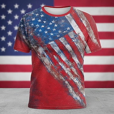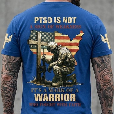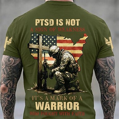 Camiseta masculina patriótica com estampa de soldado prestando continência, gola redonda e manga curta, em homenagem aos veteranos, para o Dia da Memória. Presente perfeito para fãs de moda.