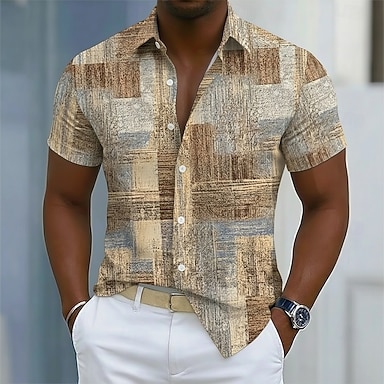 Homens Geométrica Bloco de cor Retalhos Camisa Social camisa de verão camisa de botão Manga Curta Moda Casual Ao ar livre Férias Dia a Dia Verão Primavera Aberto para a Lateral Impressão 3D Camisa