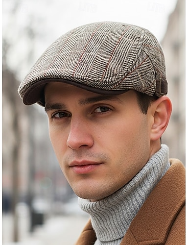Boné masculino vintage de poliéster, modelo xadrez, disponível em várias cores, um chapéu casual e estiloso para o outono e inverno.
