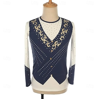 Top de patinação artística Homens Para Meninos Patinação no Gelo Tops Azul / branco Patchwork Elastano Elasticidade Alta Treino Competição Roupa para Patinação Clássico Cristal / Strass Manga Longa
