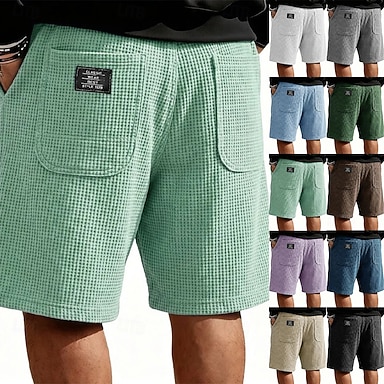 Homens Waffle Shorts de verão Shorts de praia Com Cordão Cintura elástica Perna reta Tecido Conforto Macio Comprimento do joelho Diário Praia Moda Chique & Moderno Azul Preto Sem Elasticidade