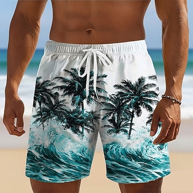 Homens Coqueiro Calção de Banho Bermuda de Surf Shorts de Natação Cintura Média Havaiana Casual Feriado Praia Com Cordão com forro de malha Cintura elástica Designer Roupa