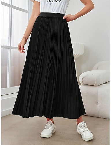 Mulheres Saia de férias Elegante Moda Casual Longo Cintura Alta Saias Tecido Pregueado Micro-Elástica Diário Rua Preto Verão Poliéster