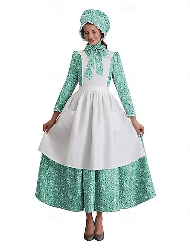 250º Aniversário EUA século 19 década de 1800 Vestido Pradaria Garota Pioneira Colonial Pioneiro Guerra Revolucionária Fantasia Mulheres Dia Das Bruxas Carnaval 4 de julho Adulto Vestido Avental